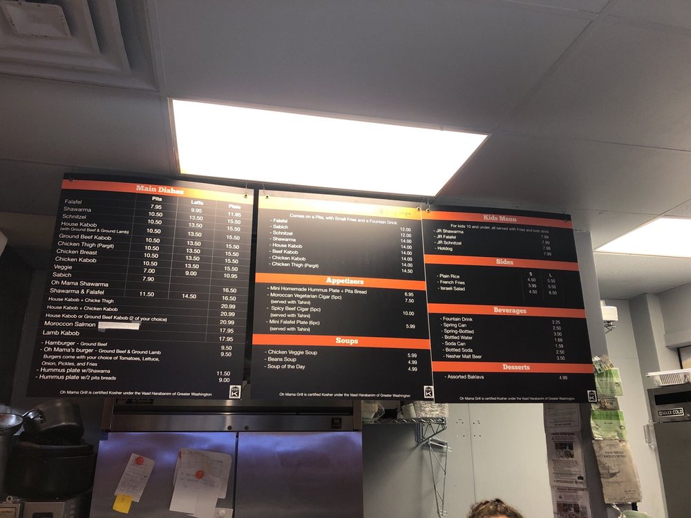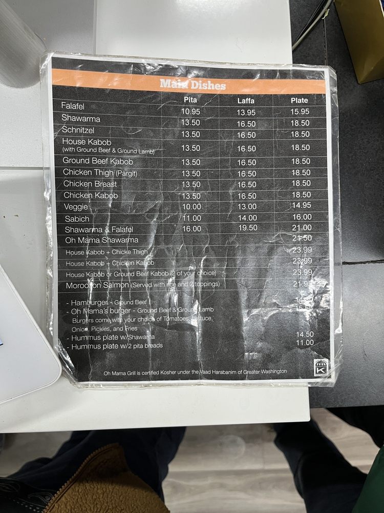 Located in Rockville, MD, Oh Mama Grill is a Mediterranean restaurant known for its authentic and healthy dishes. With a wide range of options including appetizers like Mini Falafel and Chicken Tenders, soups like Matzo Ball Soup, and salads like Israeli Salad, this restaurant offers a guilt-free dining experience. Customers rave about the flavorful food, friendly staff, and generous portions. The owner's personal touch adds to the cozy atmosphere, while the fresh ingredients and diverse menu cater to various dietary preferences including vegan and vegetarian options. Whether you're in the mood for shawarma or falafel, Oh Mama Grill promises a taste of Middle Eastern cuisine that will transport you to the streets of Jerusalem. Don't miss out on the opportunity to indulge in delicious, worry-free meals at this hidden gem in Montgomery County.
