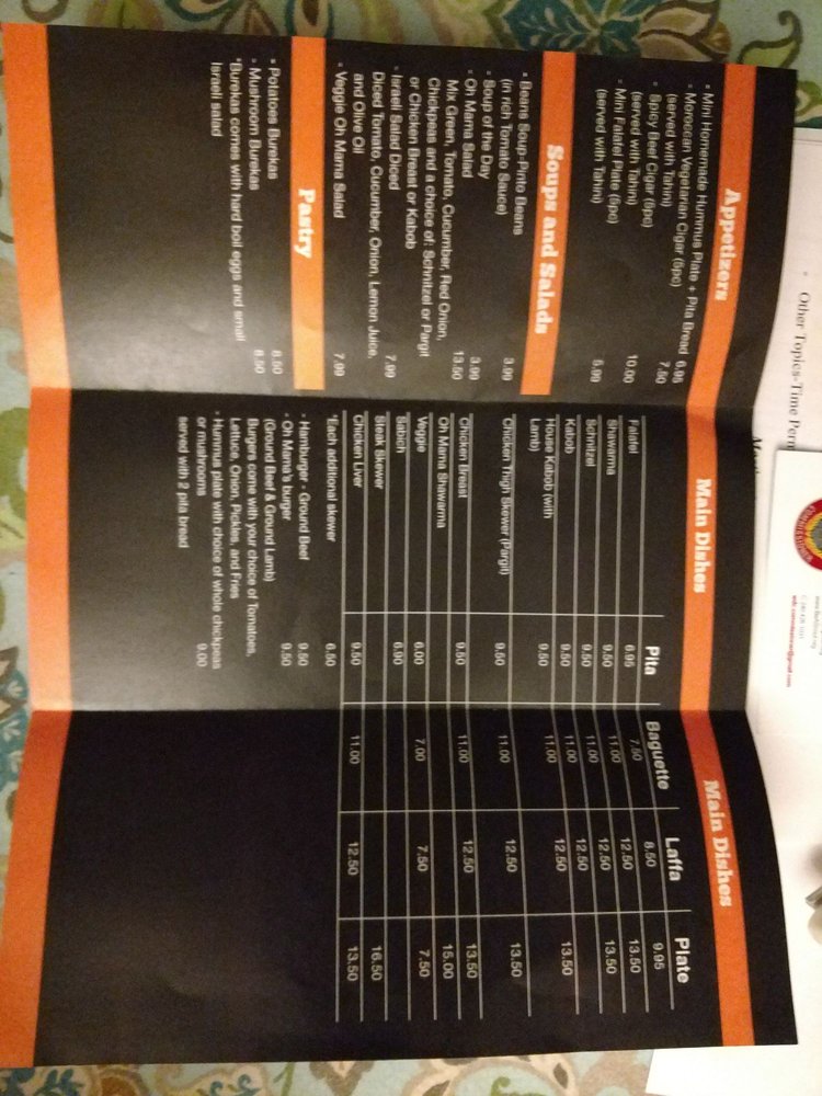 Oh Mama Grill Menu